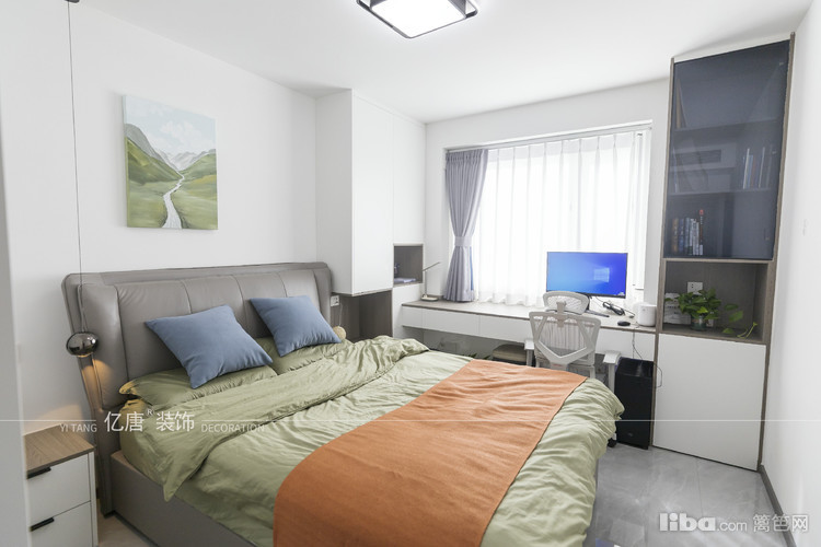 两侧都定制书架,在摆放一台电脑,对于工作狂来说,这个书桌就是人间理想,一秒开启工作,尤其现在后疫情时代,在家有个属于自己的办公环境工作效率也会提高。