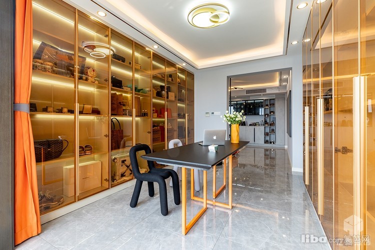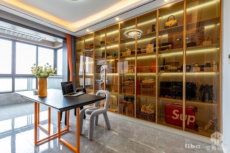 飘窗用爱马仕橙的贵族感和银色的低调内敛彰显着时尚的格调。