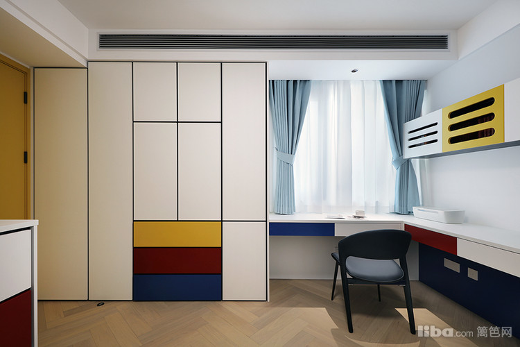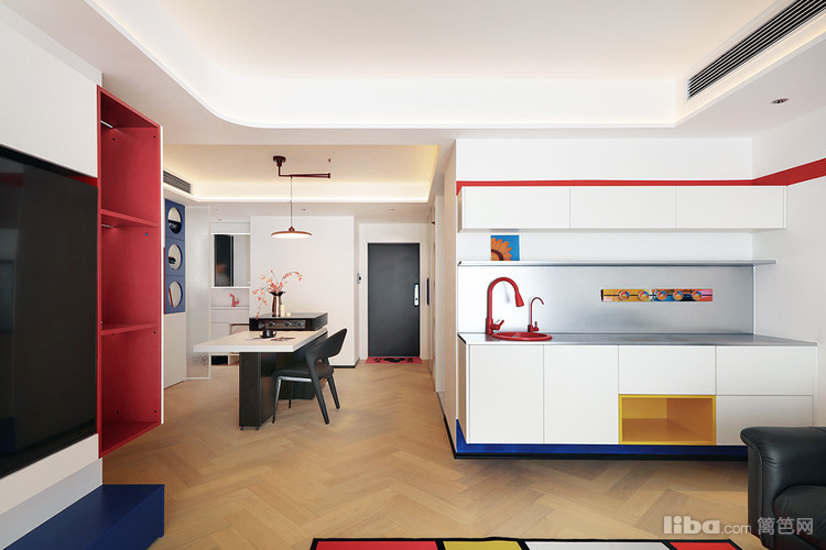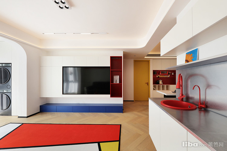 喜欢蒙特里安的作品,希望家里变成画中的一部分,有视觉张力的同时,保留一定的秩序感。