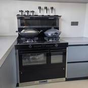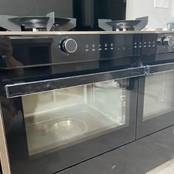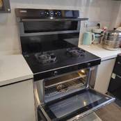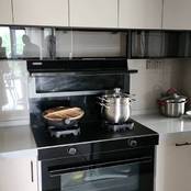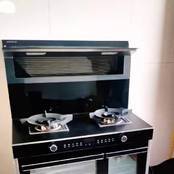 看起来很高端大气,比较省空间,希望用起来时吸烟效果好。蒸烤箱比较大,放在燃气灶下面也很节省空间,希望不要蹿味了。整理来说机器高端大气,售前和售后服务都不错,师傅很认真