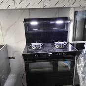 集成灶已安装调试完工,超大的炫彩屏,黑晶工艺台面非常上档次,语音,手机,触屏三种操控模式。超强大吸力不跑烟低噪音,大火力纯蓝焰热值高做饭快而且节能,售后安装服务快态度好讲解使用操作很細心,为安装售后服务人员点赞。