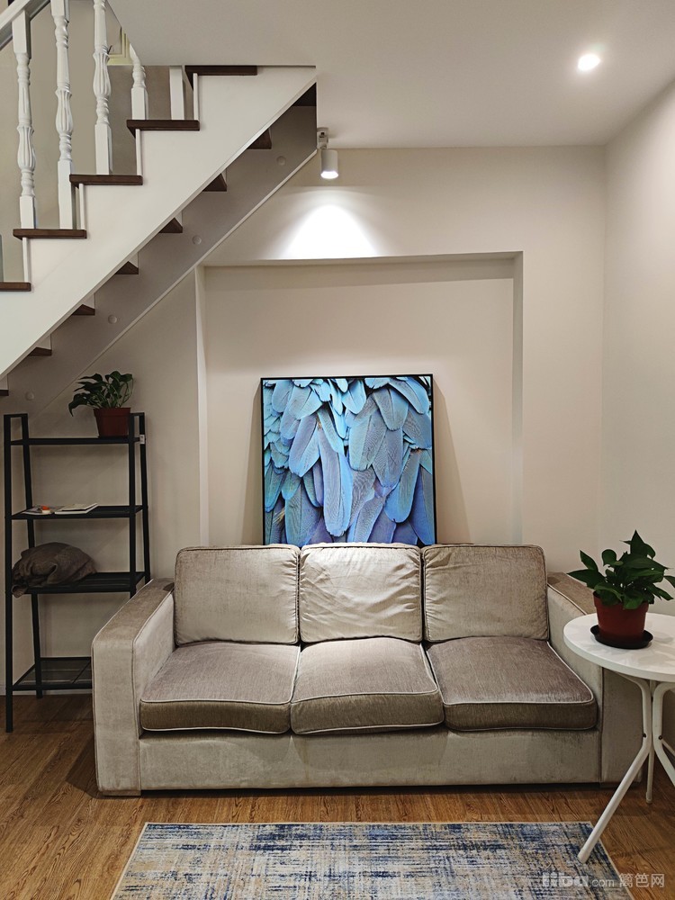 客厅米白色调木饰面增加明度对比,低调的色彩营造给入住者留有很大的即兴空间。