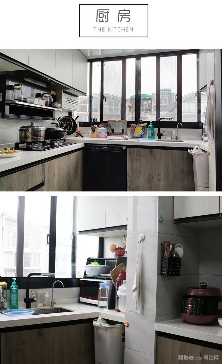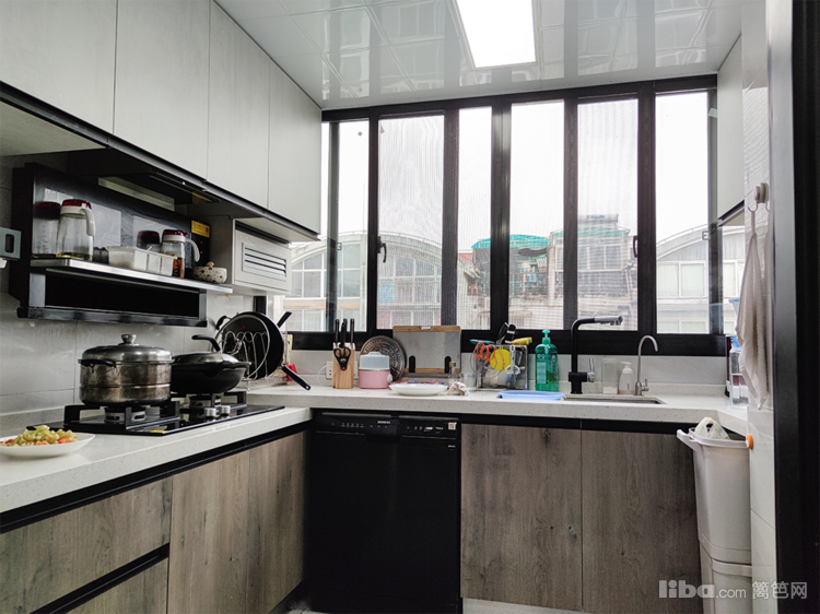 敞亮厨房,避免了油烟的烦恼。白净的墙砖,提亮空间,木纹理橱柜在白色的陪衬下显得格外醒目,超大的储物空间完全满足了家庭的储物需求。