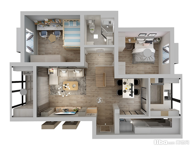 亮点设计,联通着上下层,同时也分割客厅,空间的完整感和功能的分区同时具备