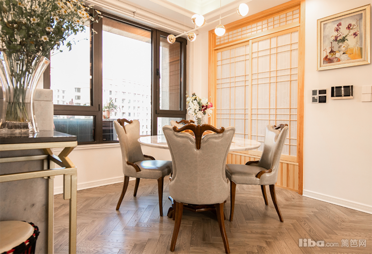 加木纹的温润,更贴合自然。接近自然的灰色、栗色、白色是屋主内心世界里对舒适与优雅的情感表达。