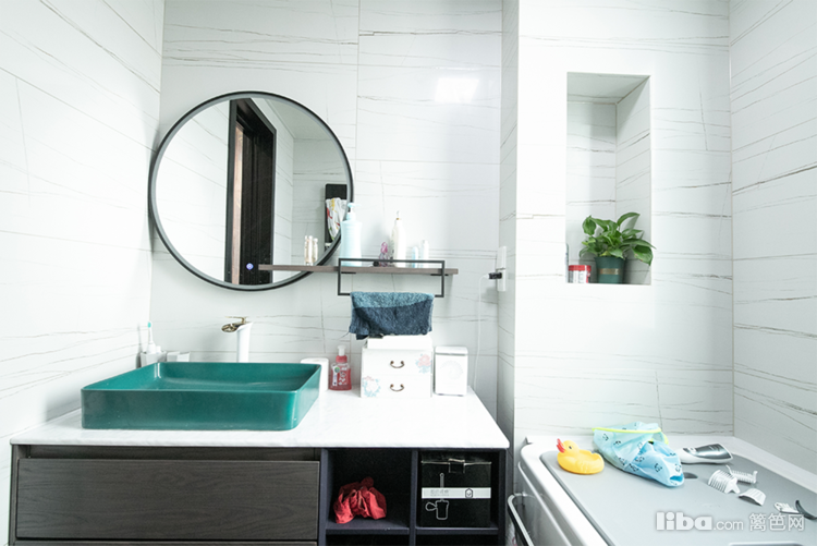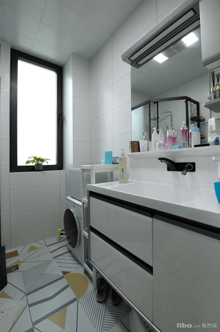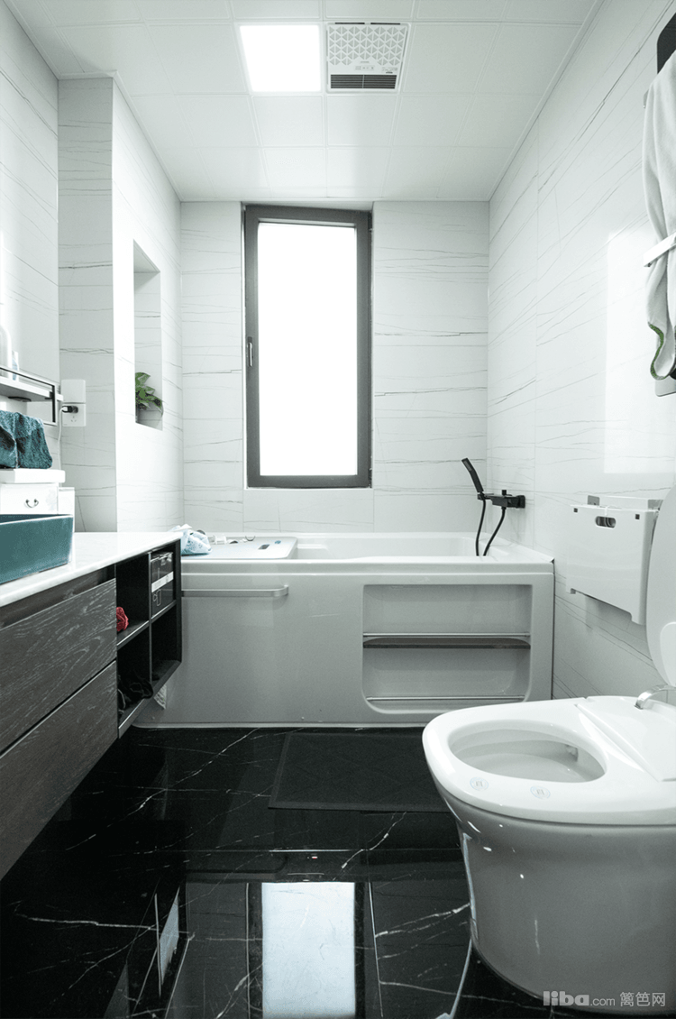 地面用黑色,墙面用白色进行搭配,解构出卫生间的层次感。加长镜柜的设计,在提升储藏容量的同时横向扩大整个空间的视觉感。