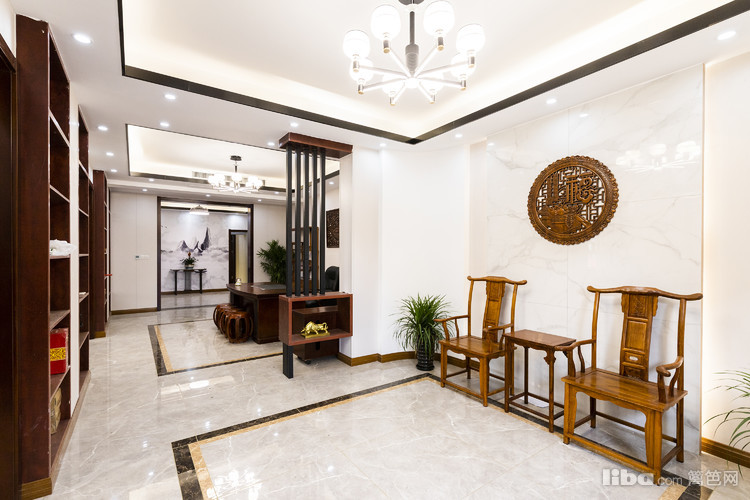 这是一个简洁静谧的洽谈空间,饶有东方韵味的休闲座椅搭配精致的饰品,相得益彰