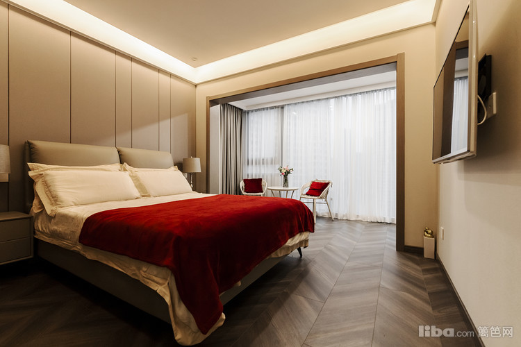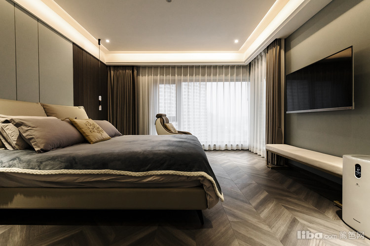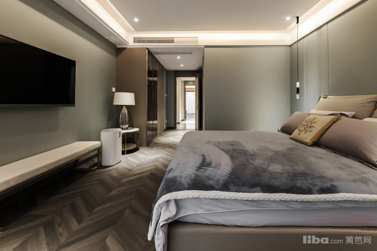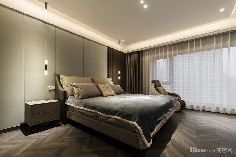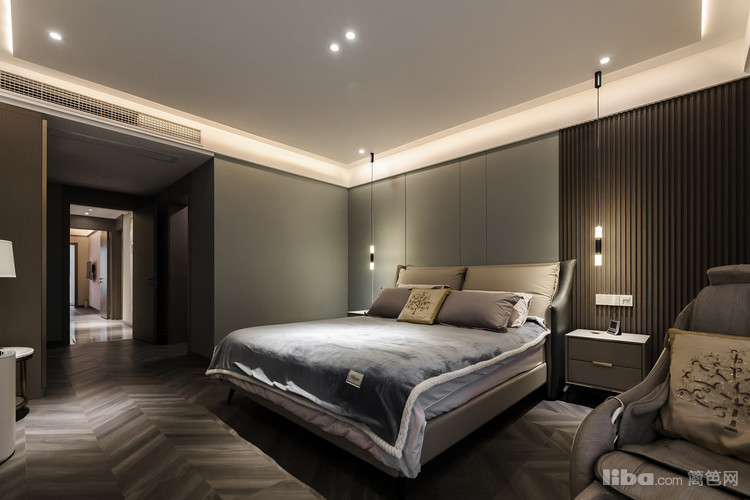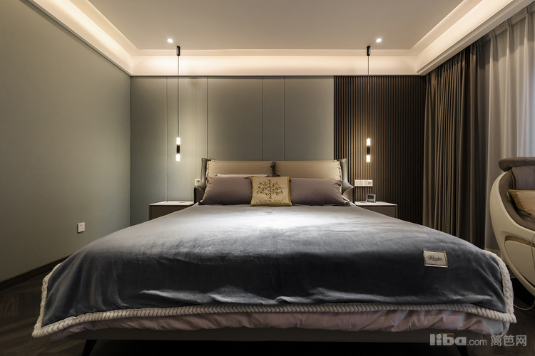 整个卧室配色十分简洁沉稳,亦不乏明快。