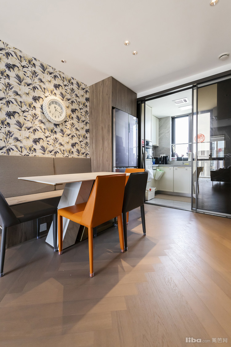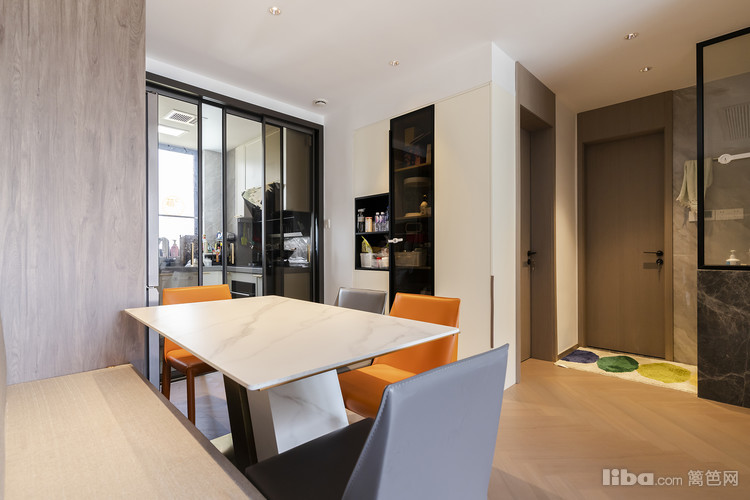 为显空间质感,搭配纤细轻巧的桌脚、桌椅,连接了整个餐柜与地面,增添了一些沉稳与包容