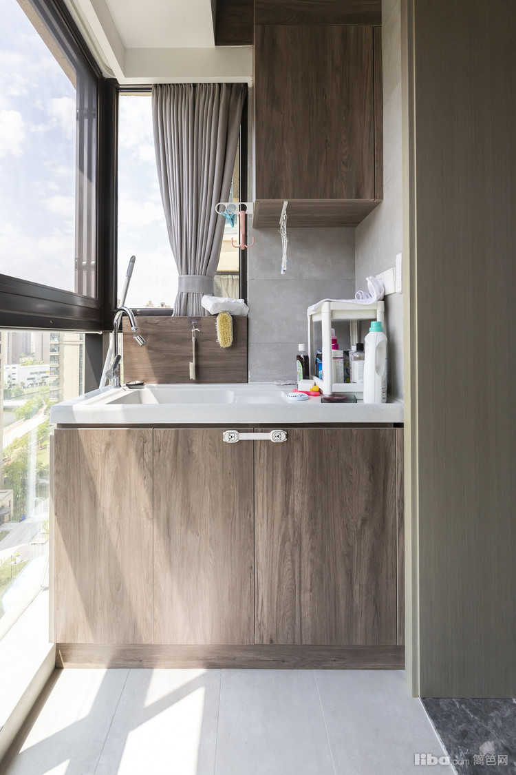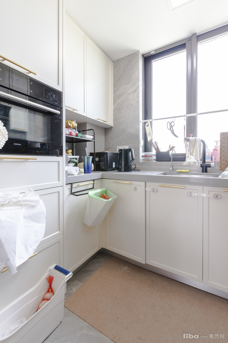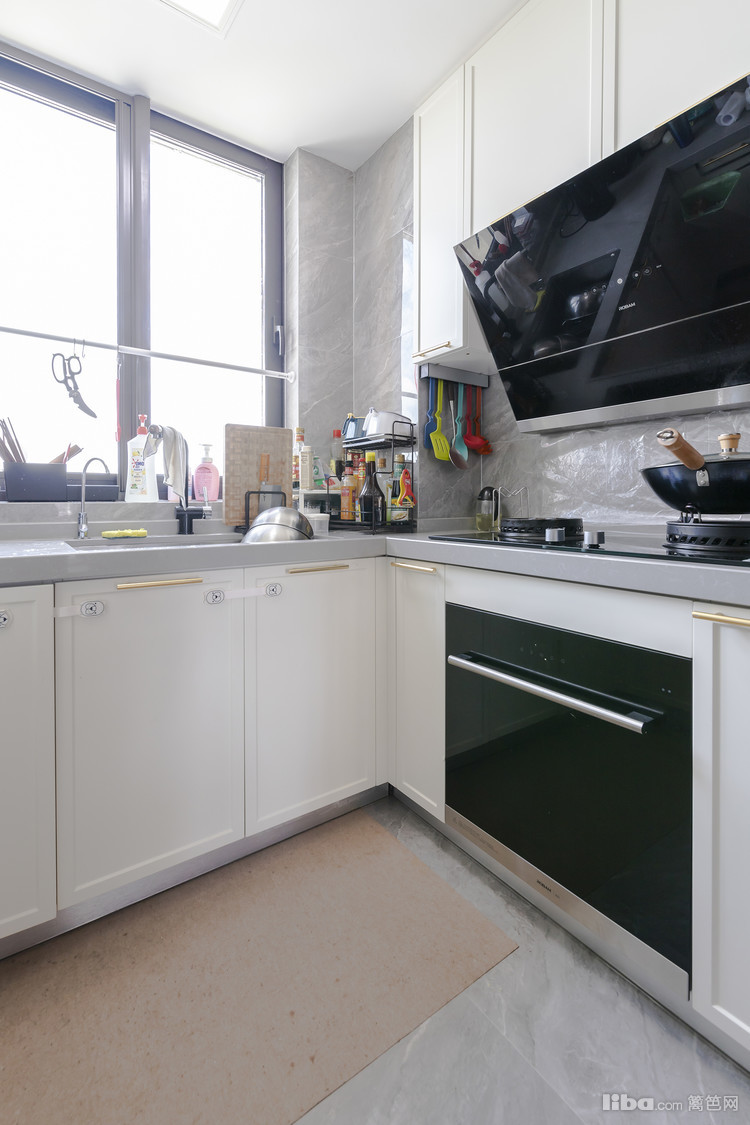依据原有户型,打造u型厨房,借用墙体深度差增设橱柜,增加收纳空间,合理利用户型结构,满足屋主日常需求。