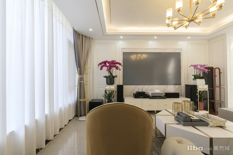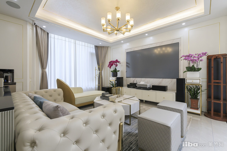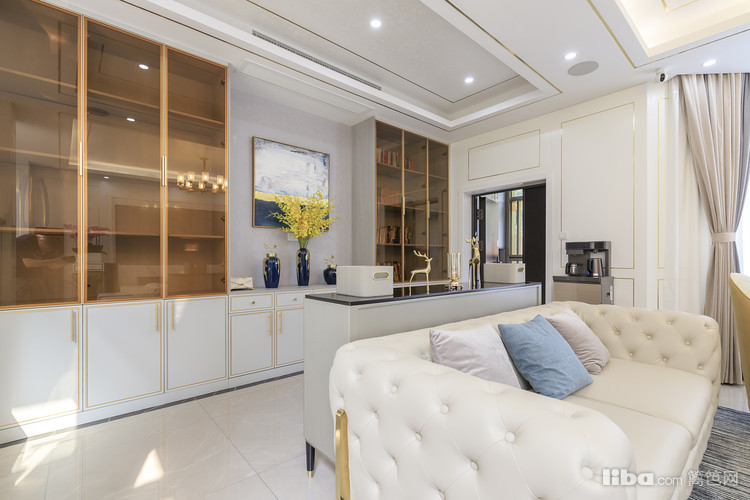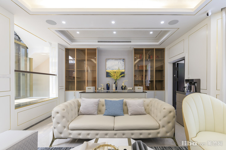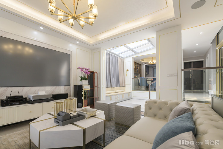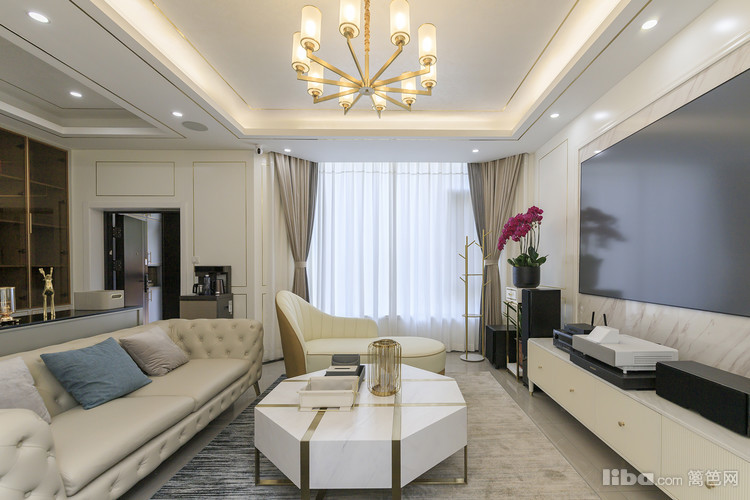 客厅的米白色三人沙发恬静沉稳,百看不厌;