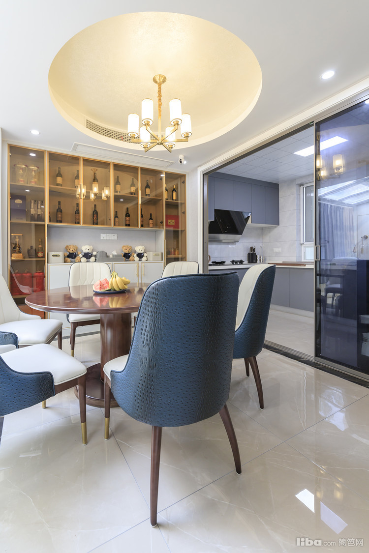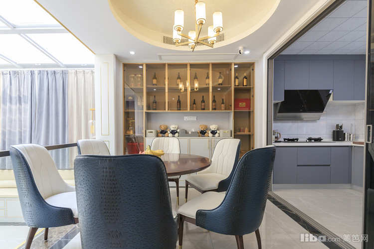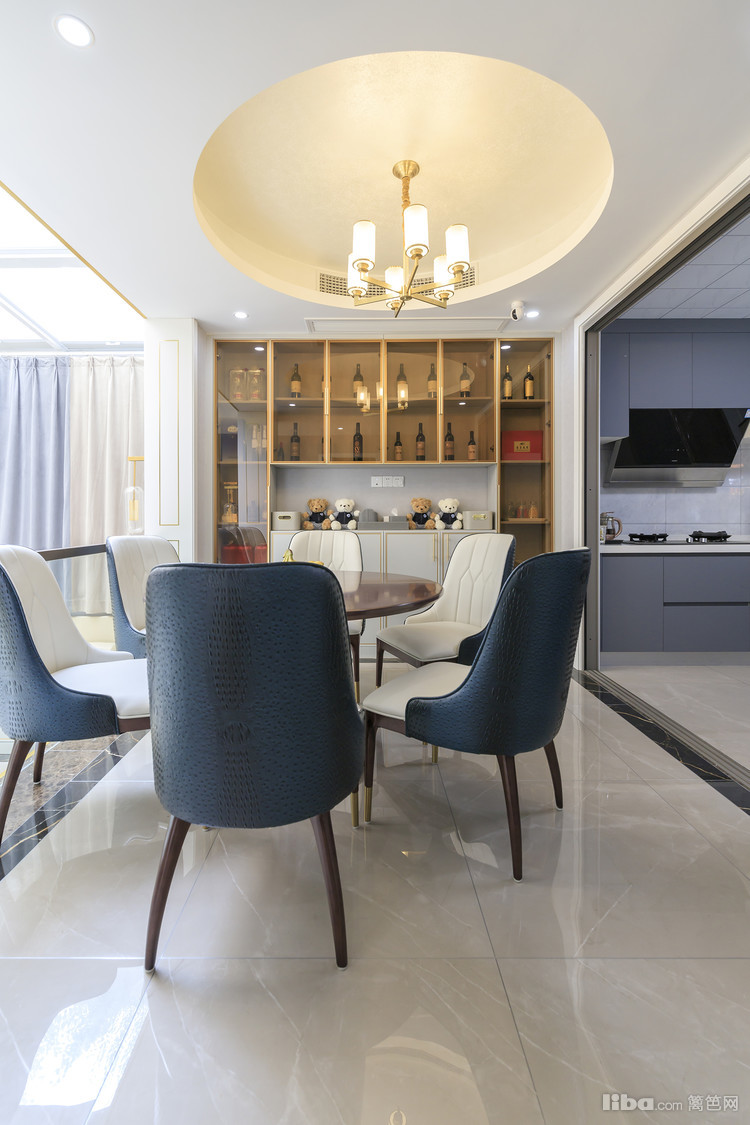 餐厅空间以蓝白色调为主,低调而雅致,不失奢华美感
