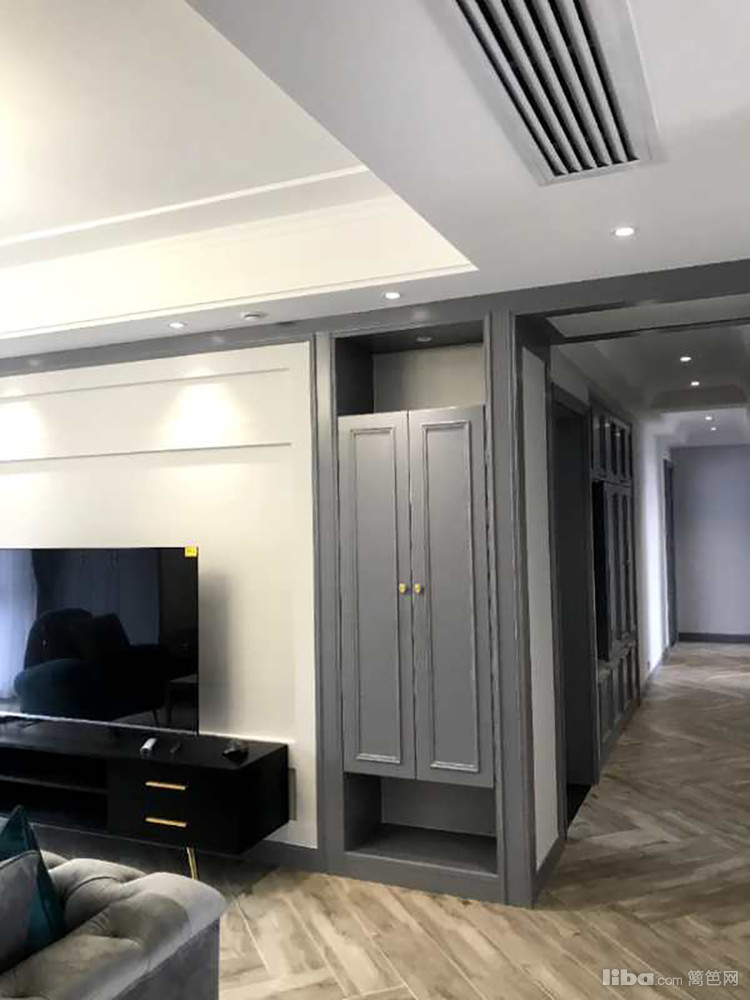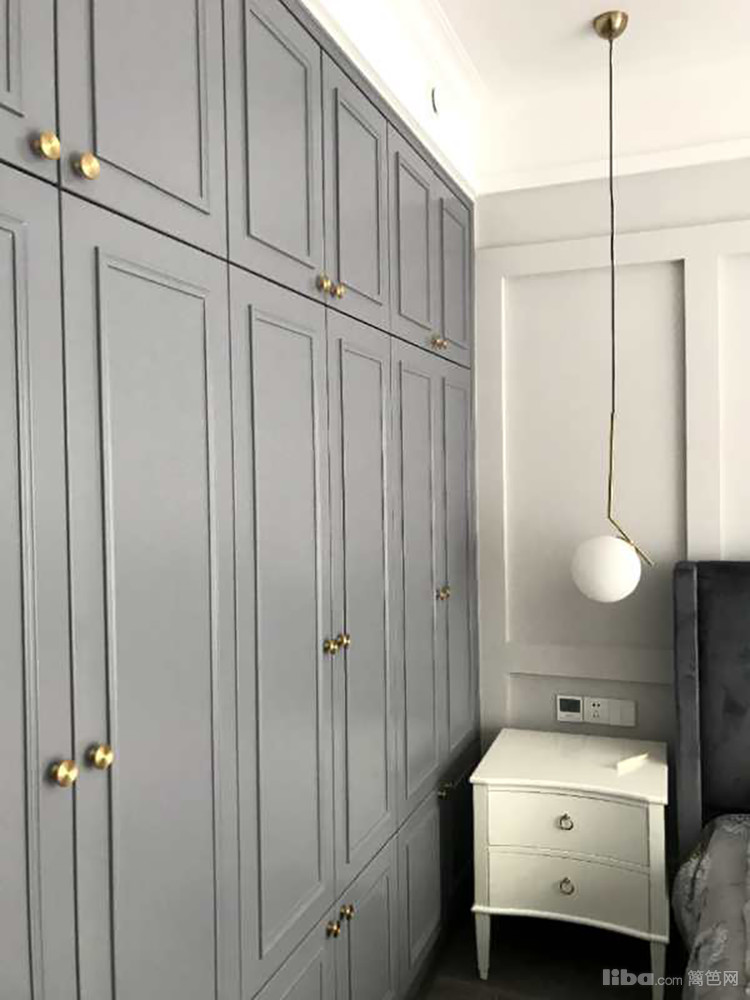业主喜欢美式风格的线条感,但又逃不过“直男”最喜欢的黑白灰,在这基础上所以柜门和房门包括门套都做成灰色。