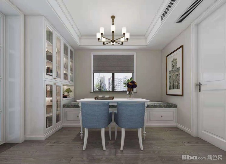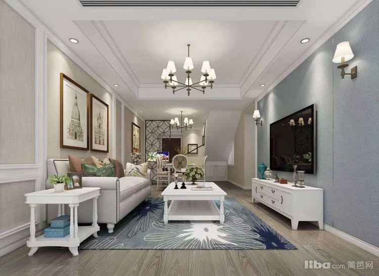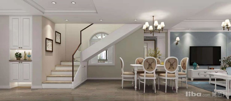 以现代美式为设计方向,主色调为白色,不同区域通过不同色彩的搭配,体现不同的视觉感受