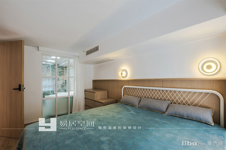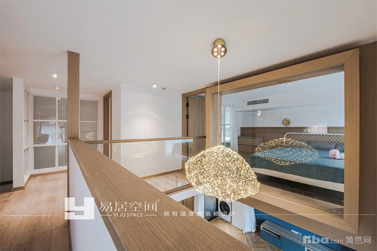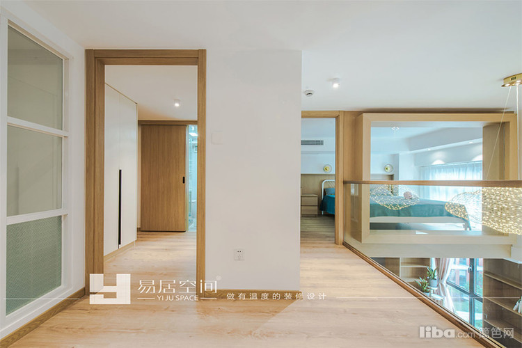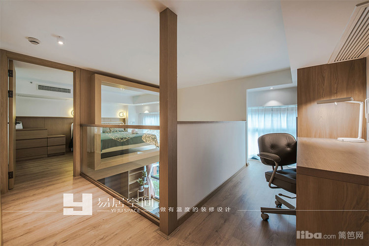 卧室层高不够高,也不大,空间上会感觉压抑,但是采用玻璃隔断来增大视野,扩展空间,透光也好,温馨舒适才更容易入眠。