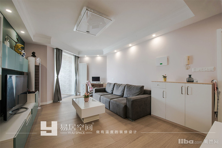 客厅餐厅厨房整个空间在一个大的空间里,用吊顶和地面的搭配区域显得更加明显和宽敞。