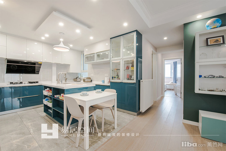 户主一家饮食习惯比较清淡,厨房要求高,接受了现在最流行的开放式厨房和中岛的设计