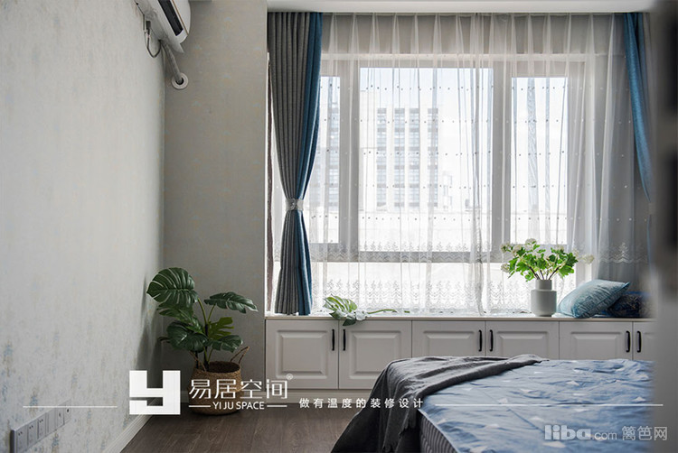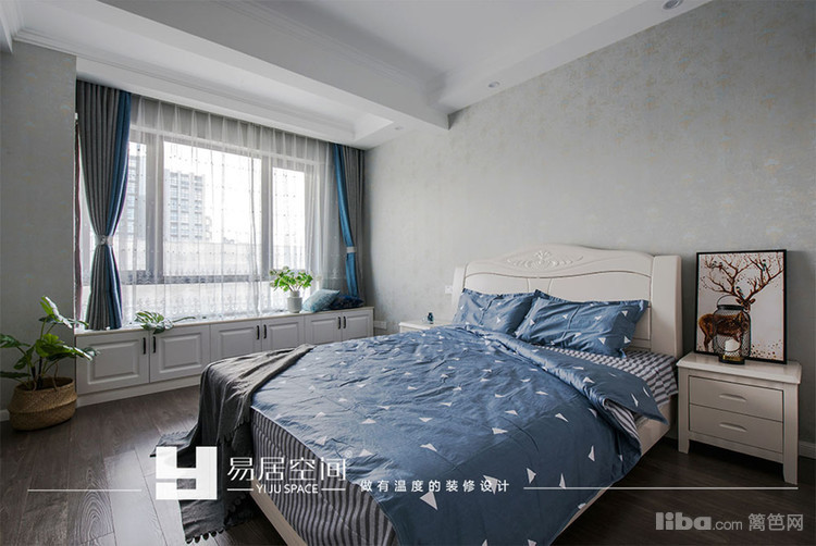 主卧室墙体做了空间调整,敲掉了多余的墙体,墙体的后退也让主卧的空间变的更加大,由于主卧室原本没有飘窗,为了满足业主的需求,增加一排一排定制柜子用作飘窗