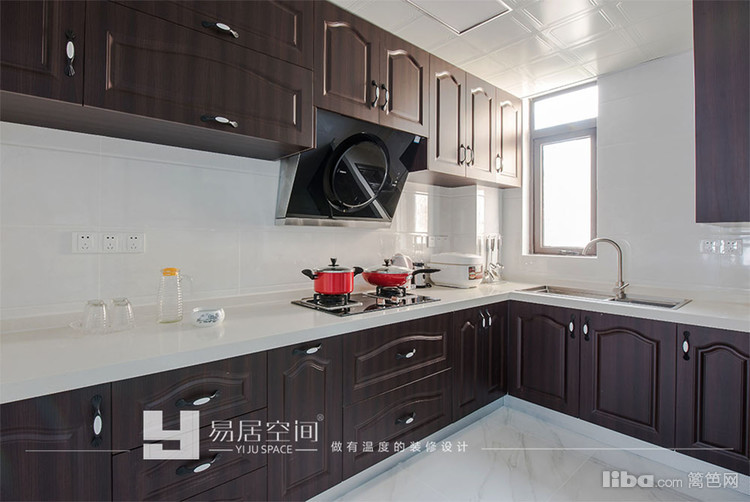 厨房的设计作为本案的重点之一,半开放式的厨房让整体空间看起来更加开阔,厨房采用移门设计,很好的增加了厨房的通风和采光,同时做了一个兼顾早餐和休闲功能的小吧台