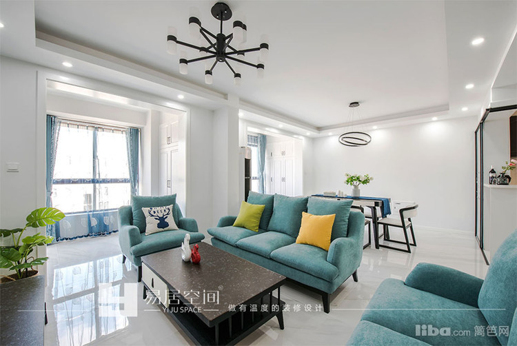 整体以简单的白色为背景,设计师基于男女业主的内心深处的核心需求,大胆不拘一格地运用清新淡雅的色彩,在格局的改造上,取消了原来的移门,将阳台和客餐厅链接起来,提高了空间利用率