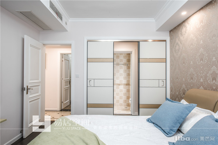 把原来衣柜占用的面积还给主卧,进主卫的区域改为从衣帽间进入,让动线和视觉效果能达到最佳。