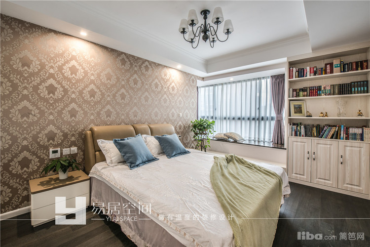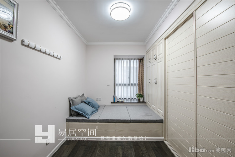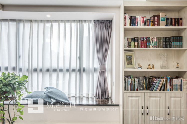 主卧有一个飘窗,为了满足主卧需要看书的要求,沿着飘窗右侧做了一个书柜