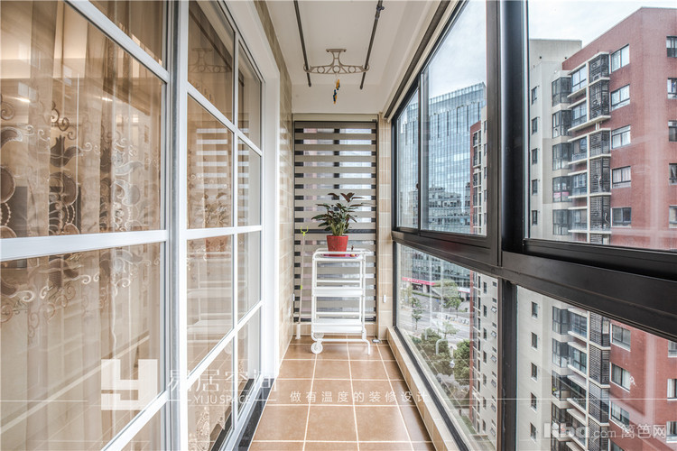 阳台地面采用暖色复古砖,和客厅的整体风格统一。