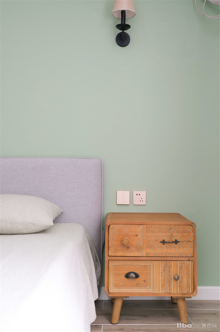 搭配复古风的床头柜。