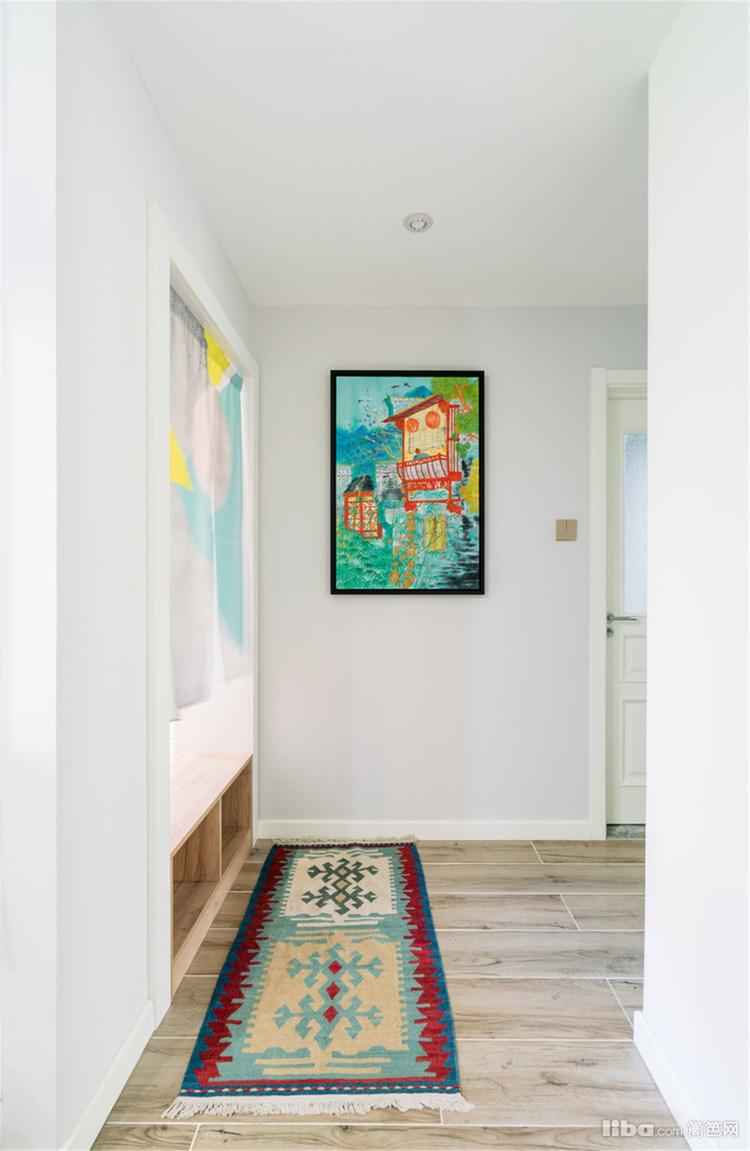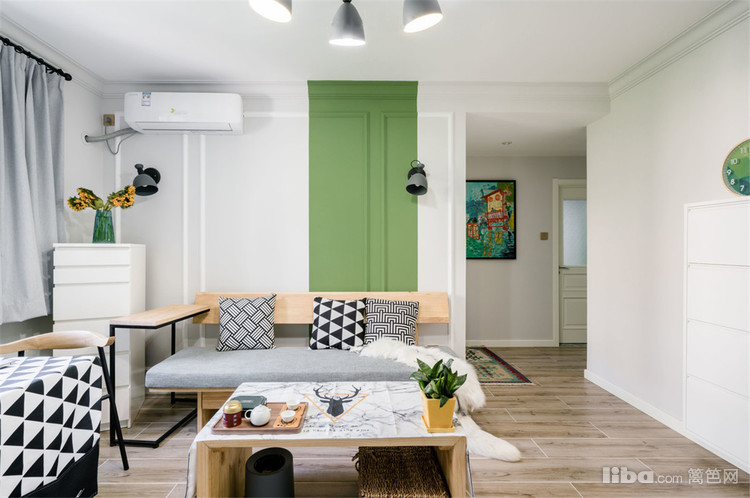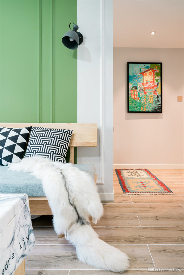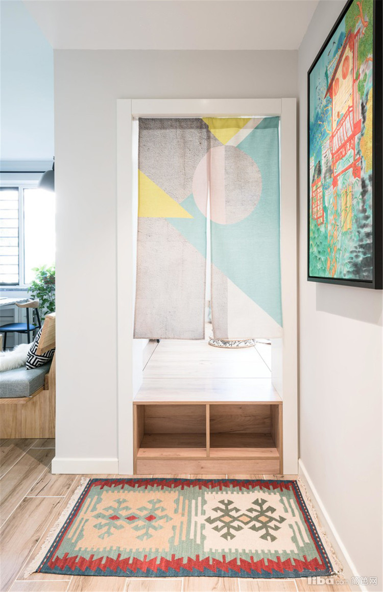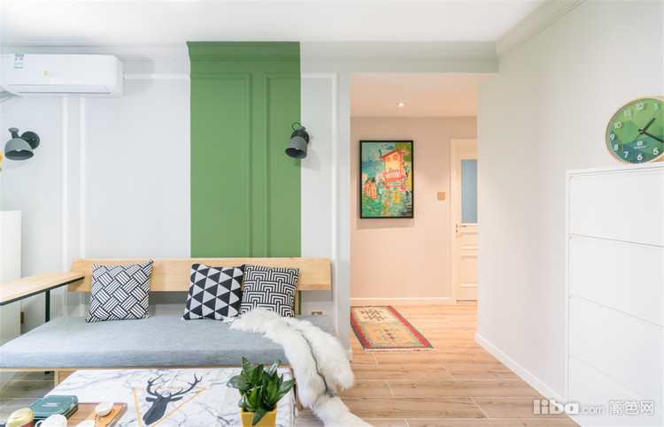 小户型,就是要利用好空间,沙发区域与进门处入户玄关柜,形成一个过道做区域划分
