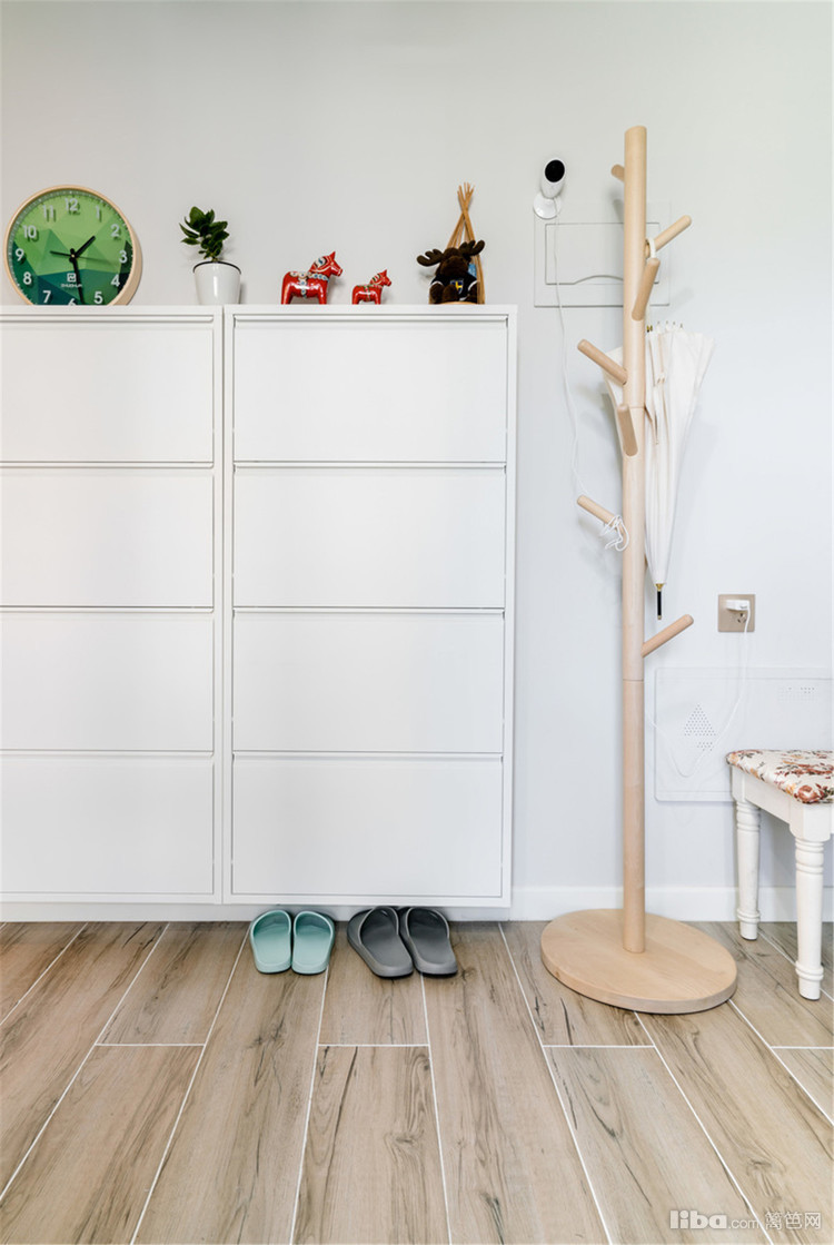 榻榻米进门处的侧面做了开放格的形式,可以放拖鞋。
