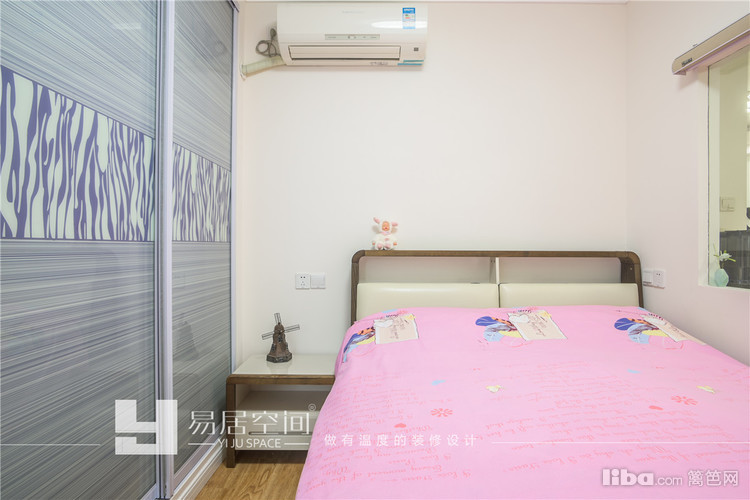 母亲房将原部分阳台区域纳入,床边现场打造木工衣柜,旁边预留矮柜位置。