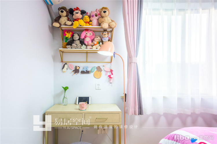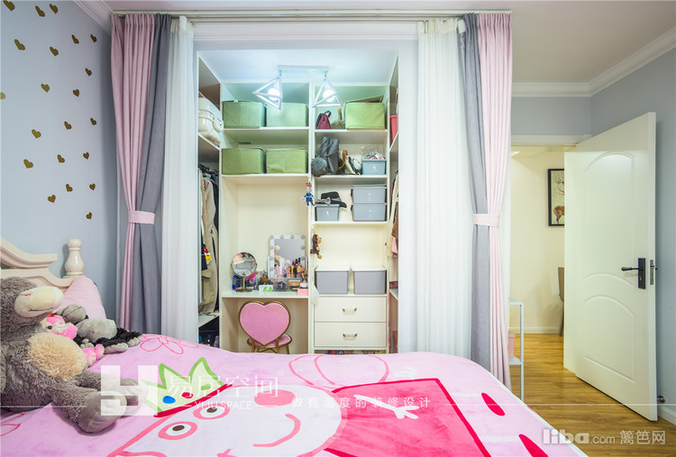 女儿房现场打造多功能衣帽间,衣柜+梳妆台。保证了空间的舒适性和功能性。