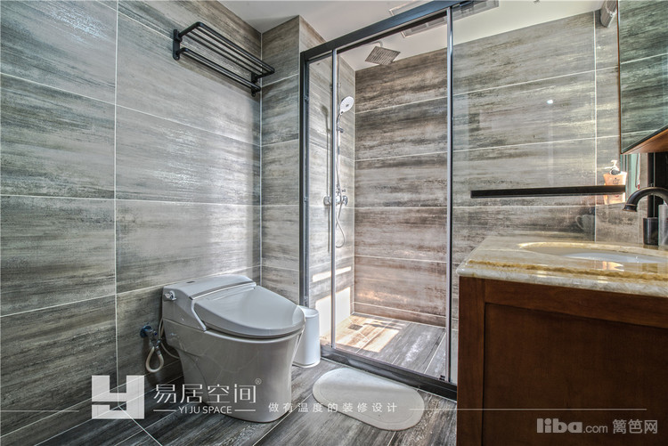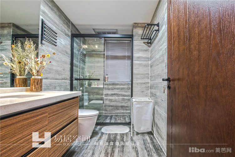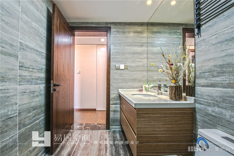 主卫整体用灰色调,采用400*800的玻化砖墙地砖一体,给人干净宽敞的感觉。