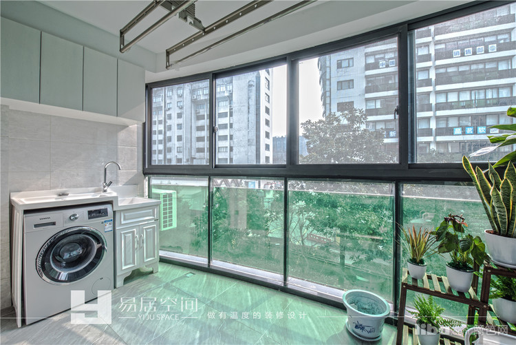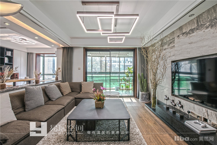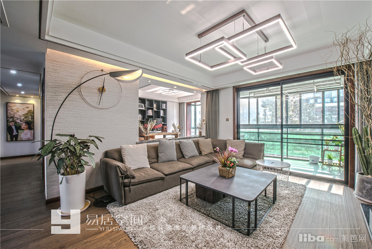 客厅联通了大露台,为了与户外更好的衔接,阳台没有封闭起来