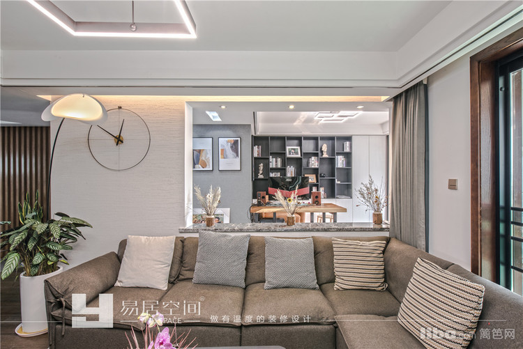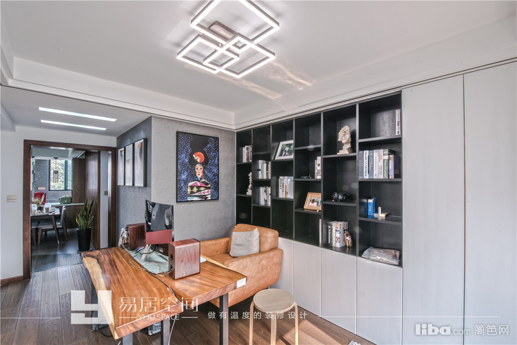 书房墙体掏空部分,空间看上去更宽敞,光线更为通透。几何灯+茶几+线条时钟+回形吊灯,简单的线条就勾勒出一幅现代感极强的画面。(茶几是男业主自己设计找工厂制作,只花费了350元哦)