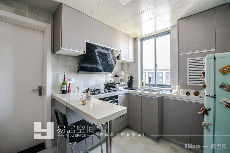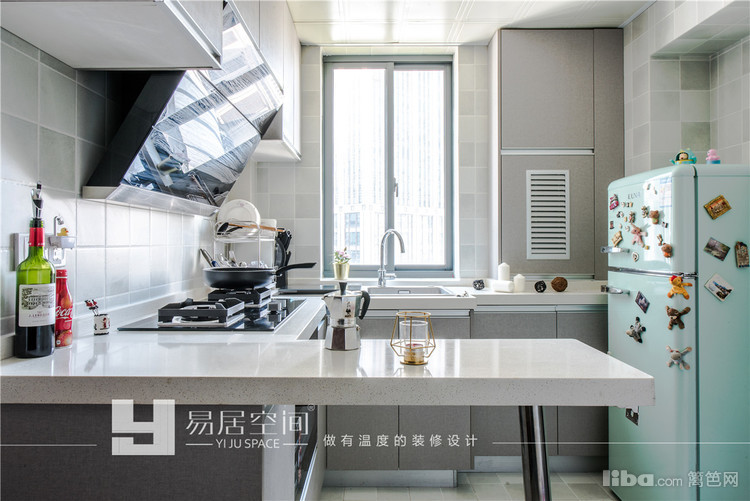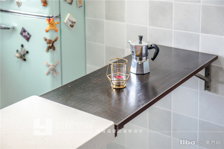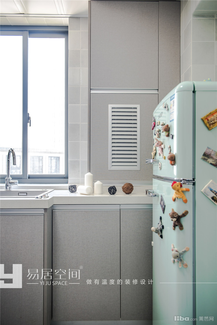 冰箱是业主专门淘来的薄荷绿复古冰箱,为了这个颜色业主说等货等了2个多月。