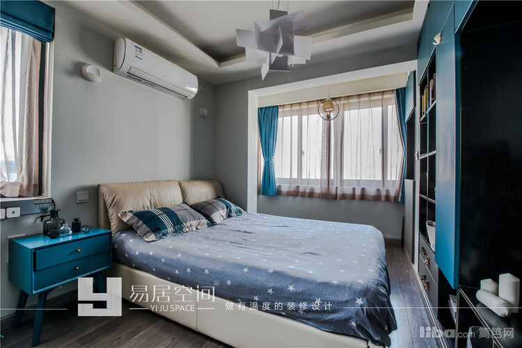 暖灰色和蓝宝石色,让人很轻松,就像身处阳光充裕的海边沙滩或者夜幕下的北极空地,身心都能得到舒展
