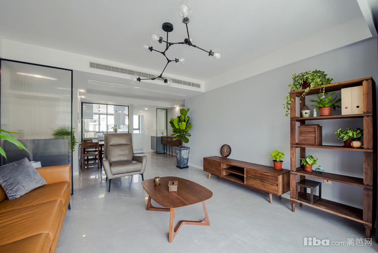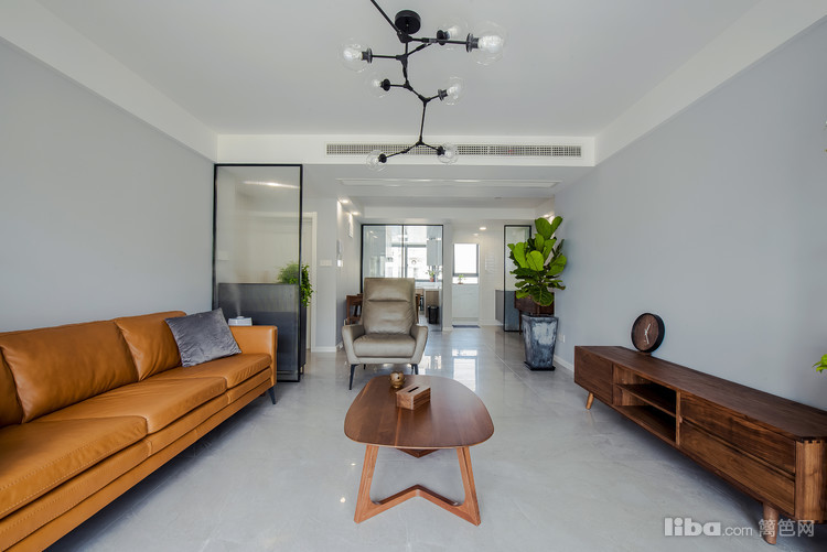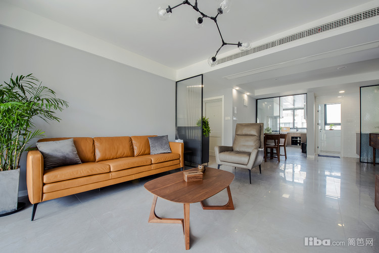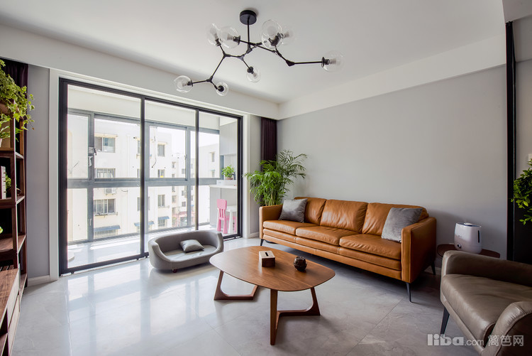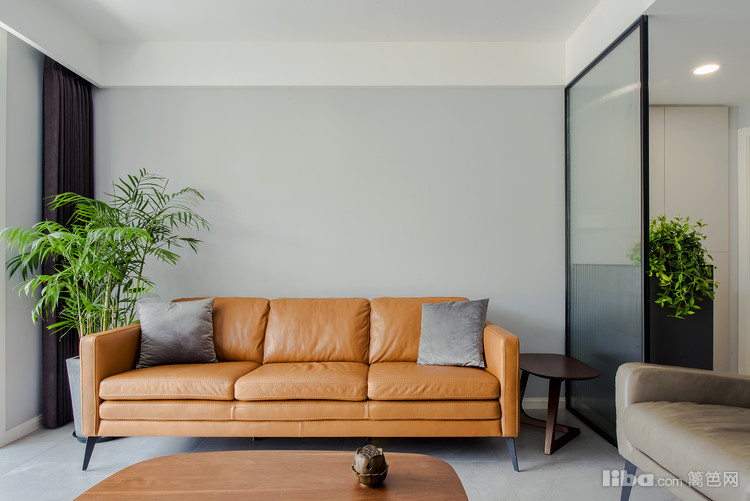 淡灰色的墙面,搭配褐色的沙发,突显北欧风