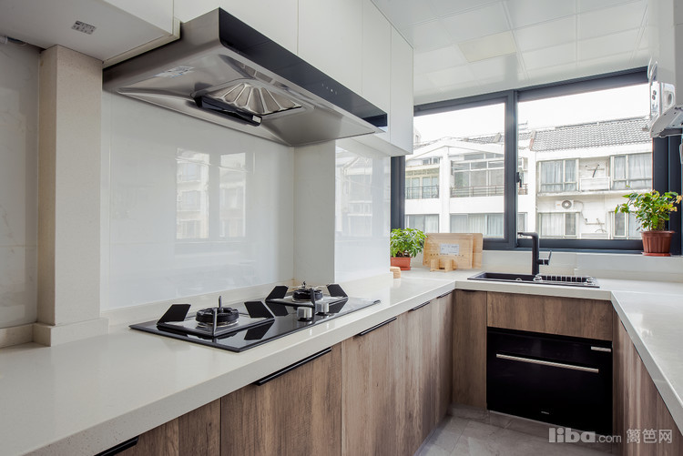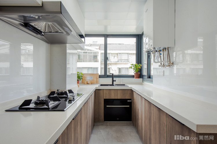 厨房设计大量的收纳柜,搭配大理石台面