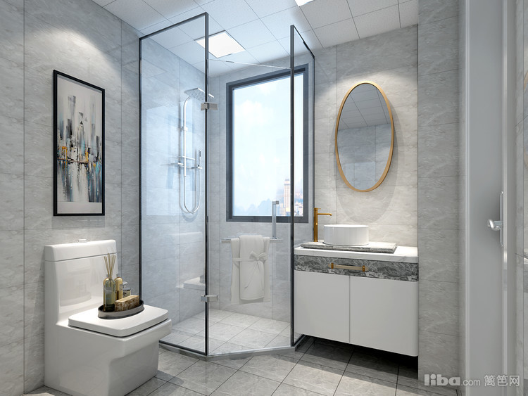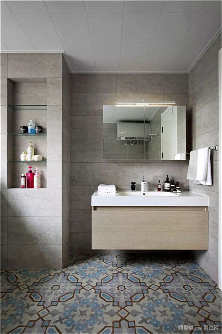 ▲几何图地砖、浅灰色墙砖,白色洁具的搭配,使整个卫生间更大气干净。整体设计相得益彰,看上去很有层次感,时尚感极强。