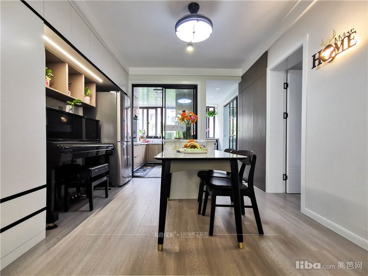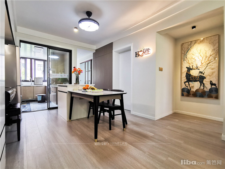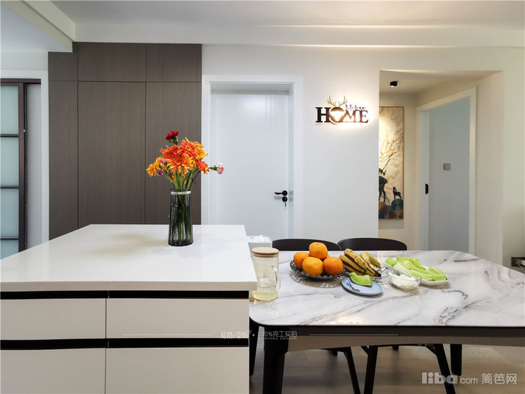舒适的用餐环境有利于人们胃口大增,心情愉悦。壁灯在白色的墙面衬托下,显得更加温馨典雅,白色整体餐边柜,满足不同的收纳需求。