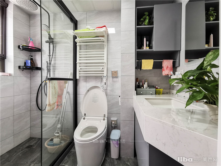 主卫采用分离布局,洗、浴、卫各自独立使用互不干扰。白色增添了卫浴室的亮度,绿植营造出清新的氛围。