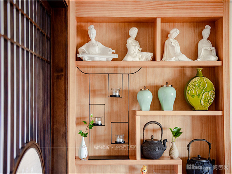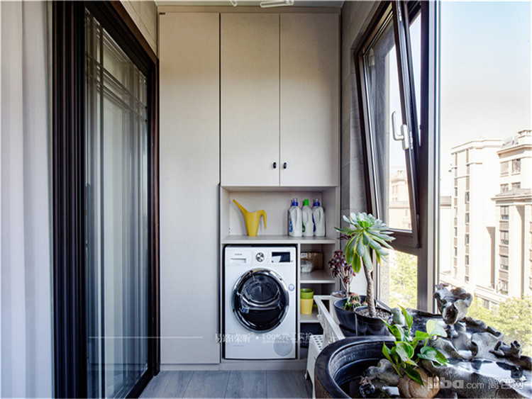 阳台铺上木纹的地砖配上自然质朴的中式流水摆件就是一个很好的休闲区。