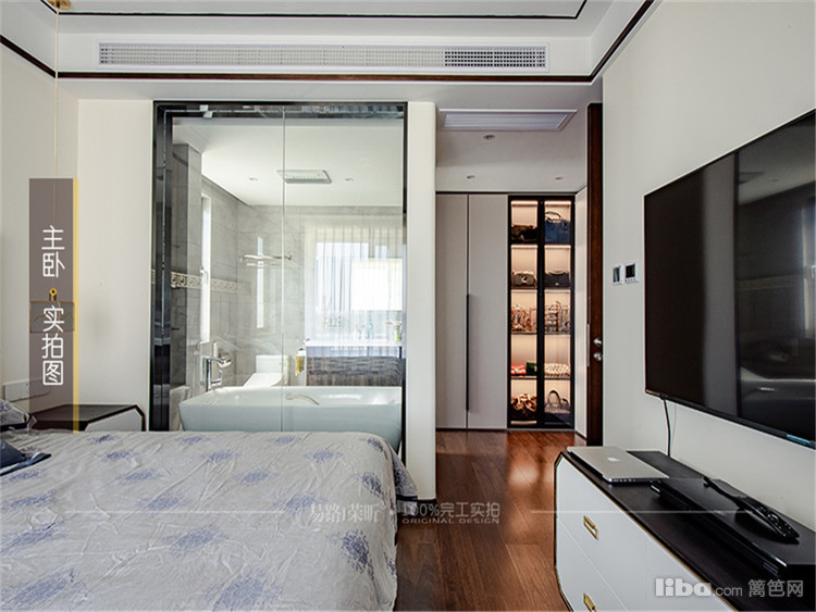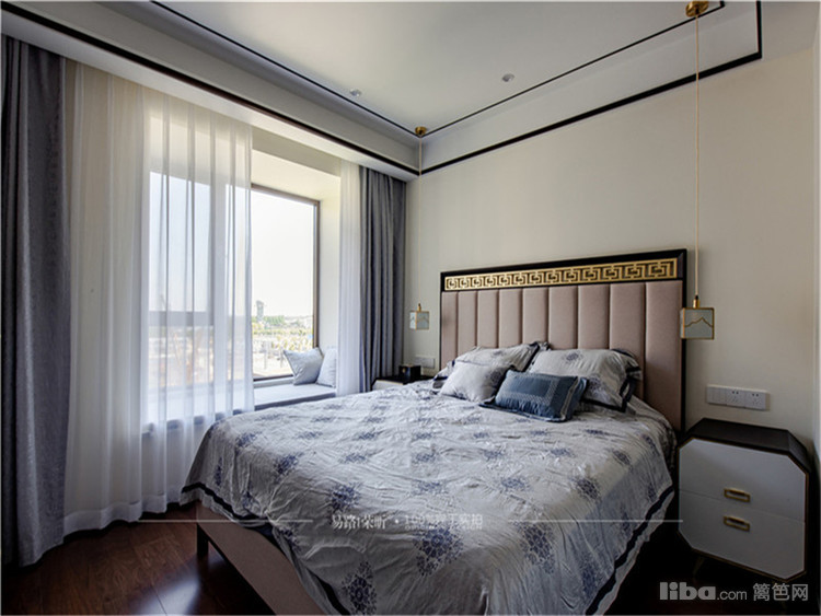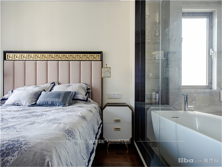 卧室色系在整体清新淡雅的基础上,用一些深色与金色元素陪衬点缀,给这个静谧的空间添加画龙点睛的一笔。