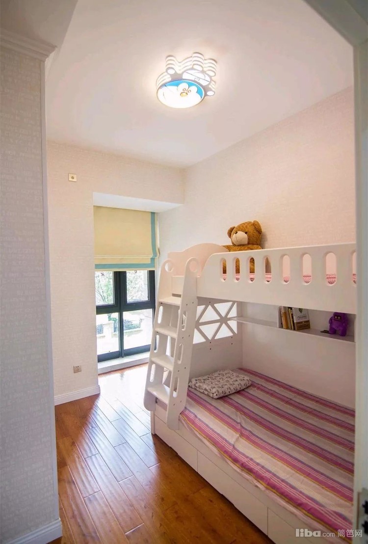 儿童房以温馨与可爱为主打,墙面全部铺贴了米色的壁纸,是更有趣味性的。
