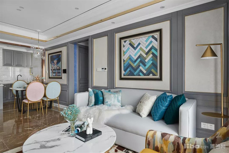客厅是给人感觉最为典雅和大气的空间,把想要表达的典雅高贵都铺垫在棕金色地砖上,带来步步优雅的感觉。