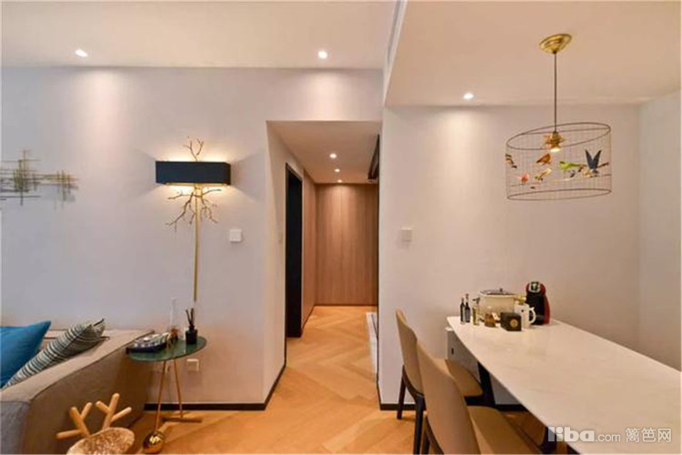 餐厅与客厅通过过道作为划分,一张长型餐桌,再多人就餐也能给你坐下。
