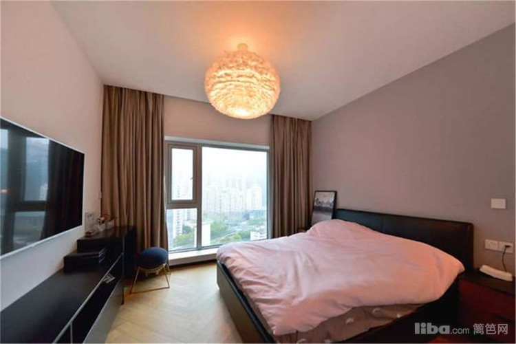 卧室整体以简洁为主,没有过多的装饰,营造出简单舒适的睡眠氛围。超大的落地窗,采光非常好。