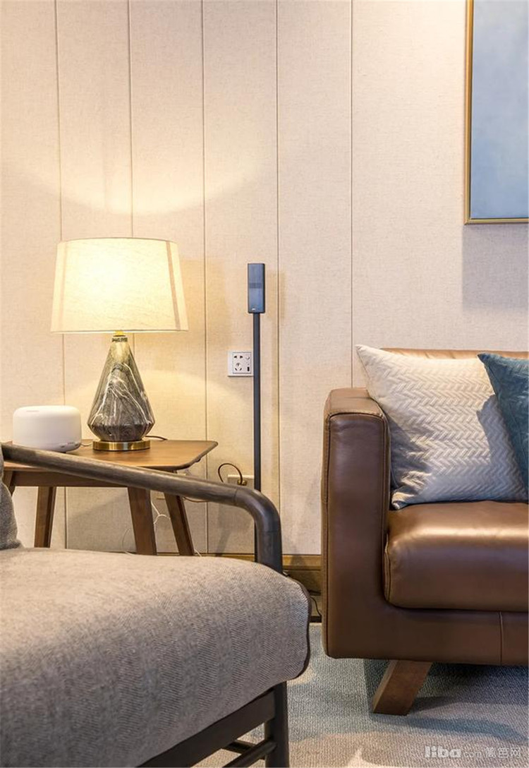 客厅沙发墙以护墙板为背景,中间挂还是那个两幅简约的装饰画,结合天花的筒灯照射,呈现出一种明亮优雅的空间感。