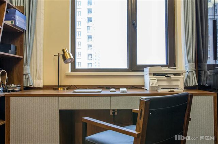 书房靠窗位置设置书桌,整体空间简约实用为主,布置黄铜质感的台灯,也显得华丽而又精致。